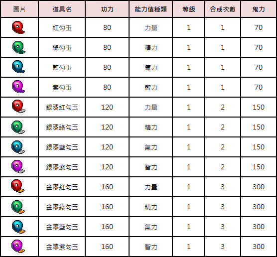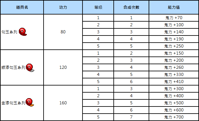 勾玉成長可以提升勾玉等級,等級提升過後會增加鬼力值以及合成次數。