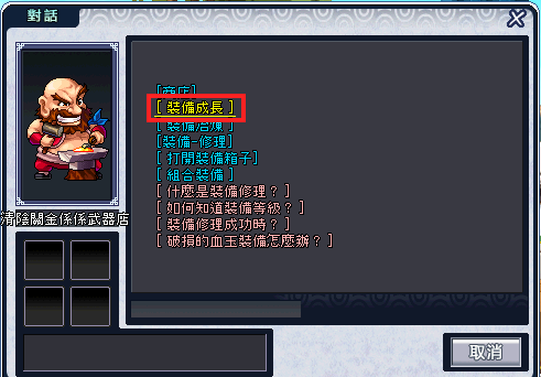 玩家可以透過各村莊「金係係武器店」並點擊【裝備成長】來進行等級的提升,